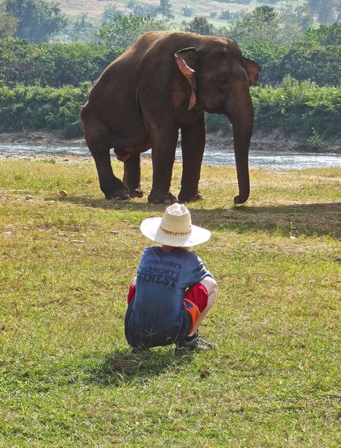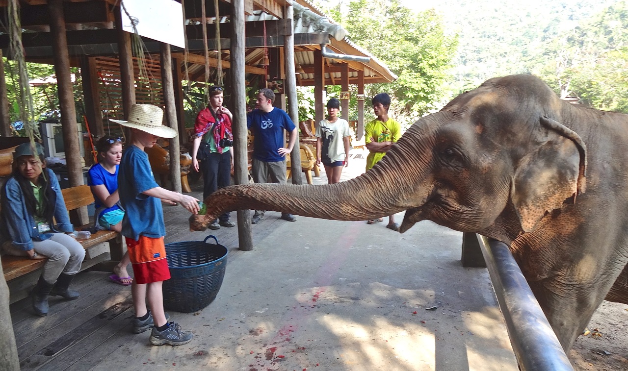 I heard stories about Thailand for years before ever visiting: Exotic, sex tourism, jungles, temples, and elephants. Planning a trip that would include my 12 year old son would have to focus on the second half of my mental list. Except for two or three minutes at the zoo every decade or two, I had never shared space with an elephant. I vaguely remember being six or seven and my mother took my sister and I to a small traveling circus and there had been a few elephants or two. Today, I am horrified by the thought of wild animals traveling in circus and being forced to perform mundane tricks repeatedly for slack-jawed audiences every night. My son will not go to that type of circus with me.