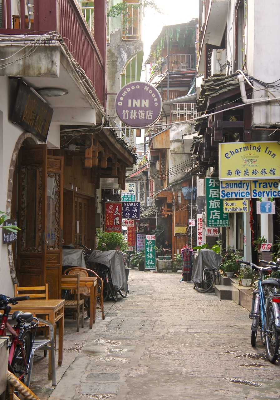 The main street in Yangshu, selling everything from local hot chili sauce and dragon fruit to KFC.Narrow alleys in Yangshuo invite the backpackers and seasoned tourists to explore a more authentic China than some of the larger tourist centers like Beijing and Shanghai.The south of China stays warm year around and looks, sounds, and feels more like Southeast Asia than mainland China.“Police-Community Relationship is Harmonious”. So says the huge sign on Yangshuo’s West Street, just between Cloud 9 Restaurant and 7th Heaven Cafe above the tattoo shop.The streets of Yangshuo are narrow with many pedestrian only-which in China only means less cars and scooters to dodge.A Buddhist temple sits above the Li River near the main tour boat docks in Yangshuo.Temples and outdoor restaurants co-mingle in Yangshuo, just off of West Street.Colorful Buddha heads form a pyramid above the door of this West Street shop in Yangshuo.Dusk and cooler temperatures bring out droves of tourists and local alike to dine outside, shop, and soak up the mountain-river town atmosphere.